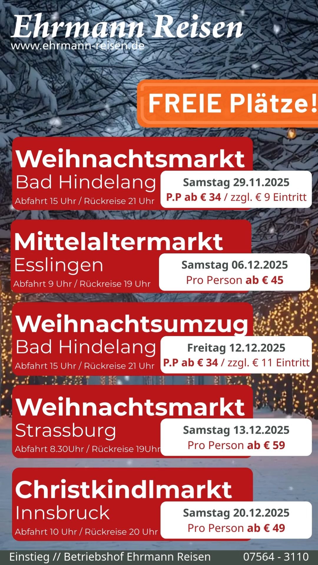 Seit über 50 Jahren widmen wir uns bei Ehrmann Reisen dem sicheren und komfortablen Reisen. Deshalb sind wir stolz darauf, als bodenständiges Familienunternehmen mit langjähriger Erfahrung, unseren Kunden aus der Region und darüber hinaus erstklassige Reiseerlebnisse zu bieten. Wir sind verwurzelt mit der Region in der wir leben. Das macht uns zu einem Partner, der die Bedürfnisse seiner Kunden genau kennt und für eine persönliche Betreuung sorgt.